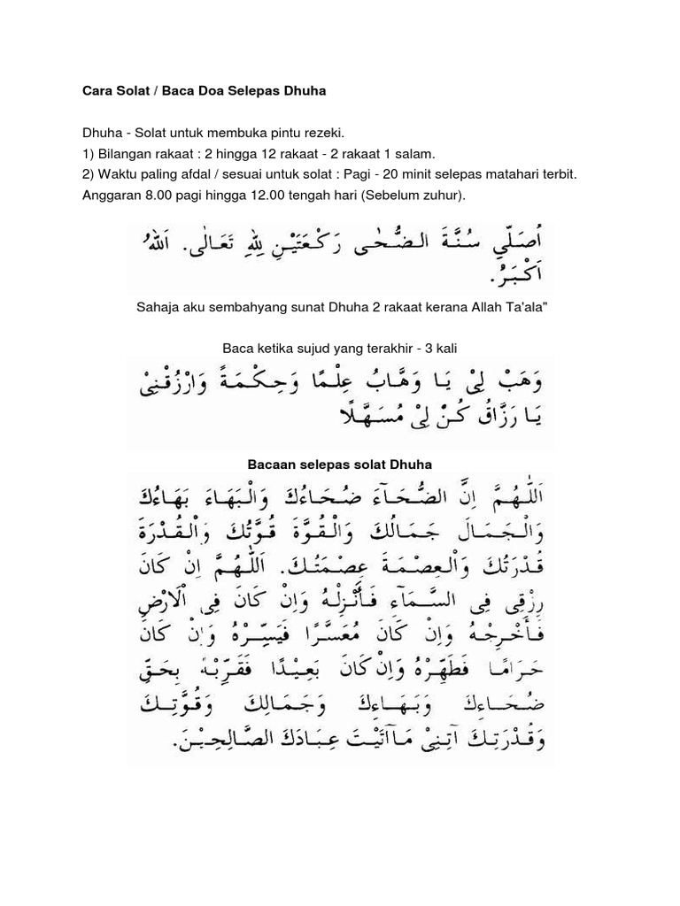 Panduan Doa Solat Dhuha Panduan Dan Juga Waktu Solat Dhuha