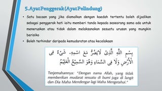 1syahadat 3x 2allohumma sholli alaa sayyidina muhammad 3x. Cara untuk membentengi dengan ayat ini adalah seperti berikut. DOA 1 Waqadimna ila maAAamiloo min AAamalin fajaAAalnahu habaan manthoora Maksudnya.